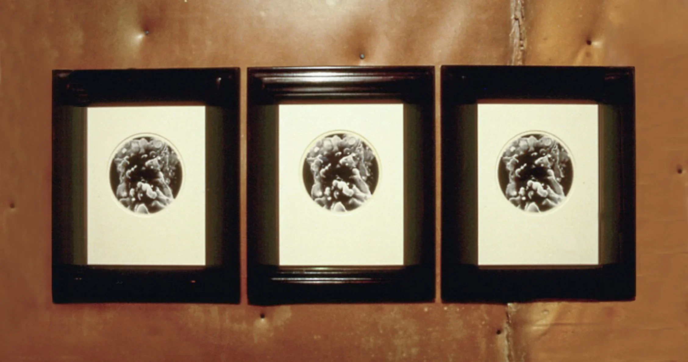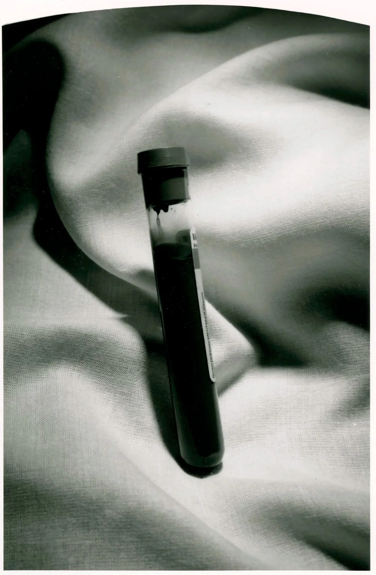 New Langton Arts, San Francisco, 1992. Nine framed gelatin-silver prints hung on the upholstered latex walls, floor, and ceiling of a 4'x 8'x 8' self-standing constructed room. A pungent odor, predominantly from the latex, adds to the viewer’s experience of being surrounded latex skin, to confront desire, hopes, and personal myth in the new age of sex, blood tests, political events, education, and trust.
